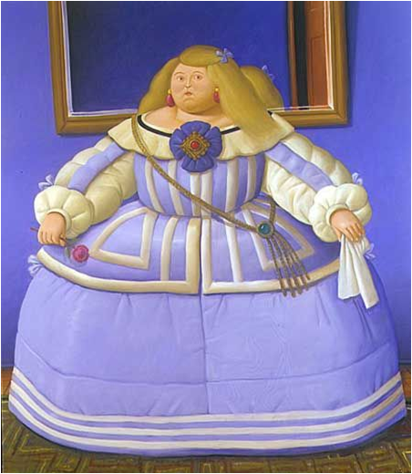LA REINTERPRETACIÓN DE LA HISTORIA DEL ARTEA partir de 1960, BOTERO lleva a cabo, entre su variada temática una serie de obras en las que parece rendir tributo a los grandes maestros de la pintura universal como “Mona Lisa a los doce años” (1959), “Rubens con su esposa” (1965) o “Autorretrato según Velázquez” (1986). Una y otra vez regresa Botero a las obras maestras del arte europeo, no con el ánimo de copiar a los grandes pintores, sino de rendir un homenaje a quienes lo impulsaron a trabajar. Sin embargo, siempre ha tenido un ojo puesto en el Renacimiento y otro en el arte moderno. El artista selecciona entre los grandes creadores del pasado aquellos elementos pictóricos que se acercan más a su sensibilidad y que serán su fuente de inspiración. "Después de Piero della Francesca", 1998 "Después de Pierro della Francesca", 1998 Piero della Francesca, frontal del Díptico de Urbino (1465-1472), Galleria degli Uffizi, Florencia. Botero presentó esta obra en el XI Salón Nacional de Artistas Colombianos en el año 1958. La primera reacción del jurado fue rechazar la pieza de plano, por considerarla, entre otras cosas, una ofensa contra la tradición artística. Botero realiza una síntesis de los valores plásticos de Mantegna más relevantes para él, y además reduce la composición a los personajes estrictamente familiares. Para ello elimina totalmente el aire del espacio. Marta Traba vio en esta obra el germen de una nueva mirada que valía la pena compartir. Muy pronto, la influencia de esta investigadora, cambiaría las cosas: la obra, antes rechazada, se levantó con el primer lugar del salón. MARTA TRABA escribió años después en El Tiempo (Bogotá, D.E., 27-IV-1966):...”se premiaba por primera vez el sentido creador, se estimulaba el arte como una aventura total, se salía de la insignificante réplica de la realidad, se deformaba la visión lógica con el añadido de la fantasía, la burla, el estrepitoso peso de las formas".   Varios de los rasgos más notorios de la obra de Botero proceden de la tradición renacentista: la serenidad de sus personajes. El colorido tan luminoso, la quietud de sus figuras, aun en pleno movimiento, que parece sugerir o eludir a la eternidad. La importancia del volumen y la monumentalidad de las formas. La precisión geométrica de la composición, la elegancia formal, el rigor en los trazos. Fernando Botero, versión de"La Fornarina" de Rafael (…) "Botero se reclama incesantemente como heredero de una tradición. (…) No hay artista de alto rango -y el de Botero es altísimo- que no reconozca a sus padres. La alternativa es la orfandad. Botero hace explícitas sus genealogías. Sabe de dónde viene porque sabe a dónde va. El arte, dice, debe saturarse de influencias. Lo que aparece al final es su propio yo. Pero ese yo no es huérfano. En el caso de Botero, los padres se llaman Masaccio, Giotto, Piero, Uccello, el Quattrocento italiano. Se ha cansado de decirlo y vale la pena subrayarlo aquí. (…) De Uccello aprende Botero que geometría es serenidad, y de Piero della Francesca -muerto en 1492, con el «descubrimiento de América»-, que el pintor organiza espacios. Aprende la majestad de los horizontes bajos. (…) Botero adapta el volumen sin perspectivas, sin necesidad de sombras a fin de revelar su propia, personalísima exaltación de alma receptiva.” CARLOS FUENTES Después de Van-Eyck, "El matrimonio Arnolfini" 1978 “La riqueza de un pintor son sus influencias, cada vez que uno recibe una, se enriquece. Hay que empaparse de todo, en eso consiste la riqueza de un artista: en haber pasado por muchas influencias, haber amado muchas obras de arte, haber visto mucha pintura y escultura para luego tener un mundo propio.“ BOTERO BOTERO, "La infanta Margarita", After Velázquez, 2005 BOTERO, "La infanta Margarita", After Velázquez, 1988 “La pintura desafiante, si bien puede chocar y horrorizar, jamás pasa desapercibida. […] la pintura de Botero llegó, en apariencia, a imponerse por su infatigable intrepidez para desfigurar la realidad. […] Sus cuadros, más que todo, son una epidermis festiva y brillante, interminablemente jugosa: el vestido de la sinrazón sobre una sólida y pensada dosis de oficio”. HERNÁN DÍAZ, MARTA TRABA |